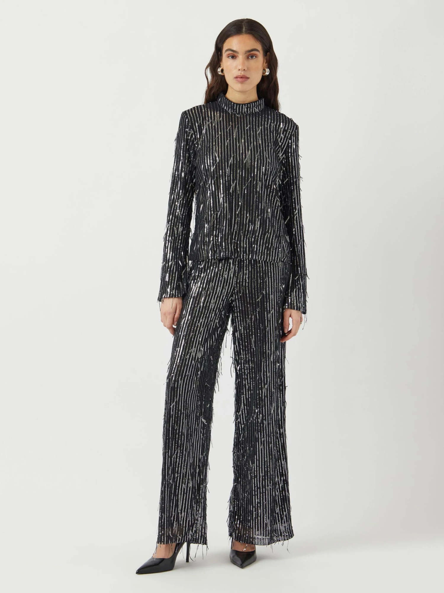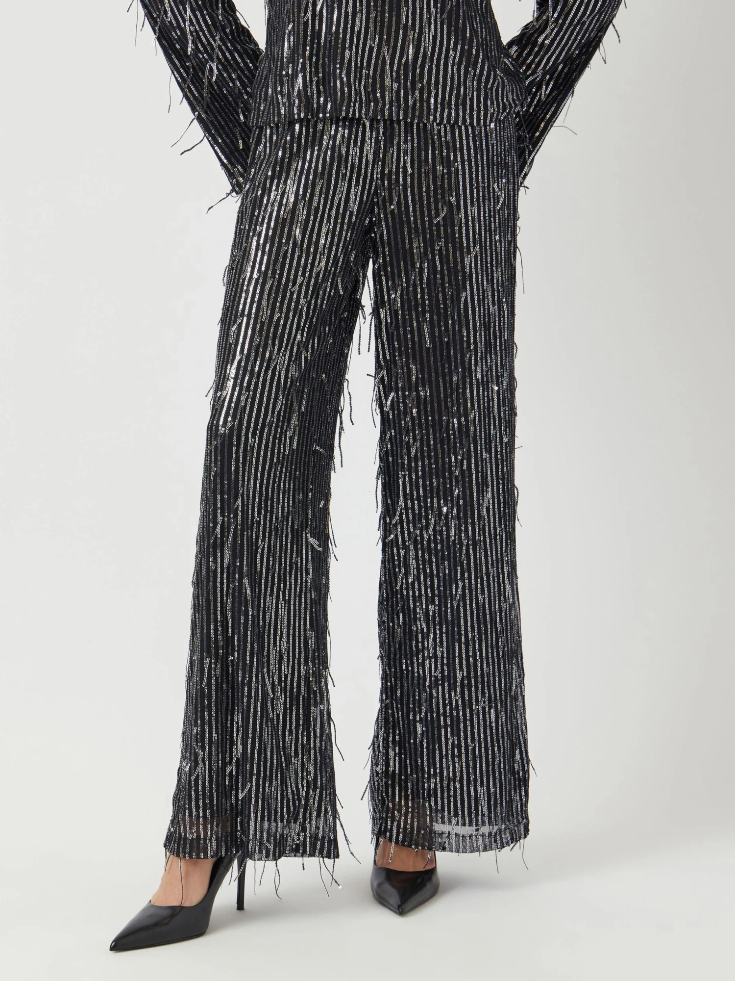 Ontdek tailoring met een moderne twist. Mix en match onze items of ga voor een opvallend tweedelig pak met stoere kleuren of levendige prints. Dit item is gemaakt met glitter en pailletten voor een opvallende look.